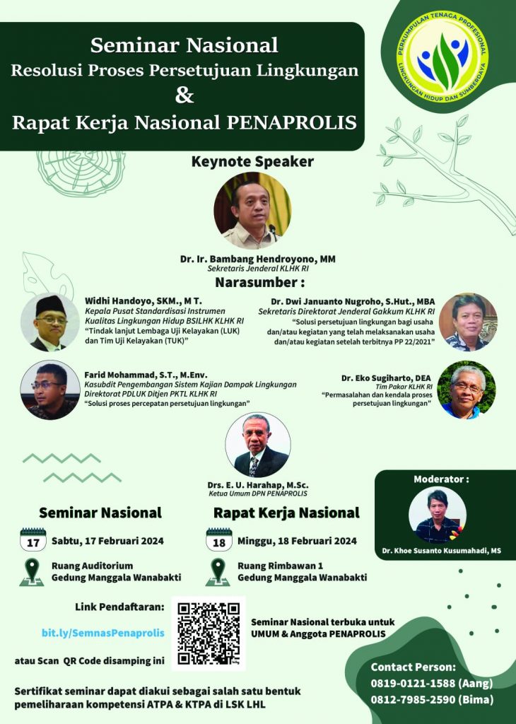 Seminar Nasional : Resolusi Proses Persertujuan Lingkungan & Rapat Kerja Nasional Penaprolis Sabtu, 17 Februari 2024