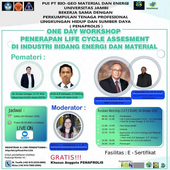 Webinar : One day Workshop Penerapan Life Cycle Assesment (LCA) di Industri Bidang Energi dan Material