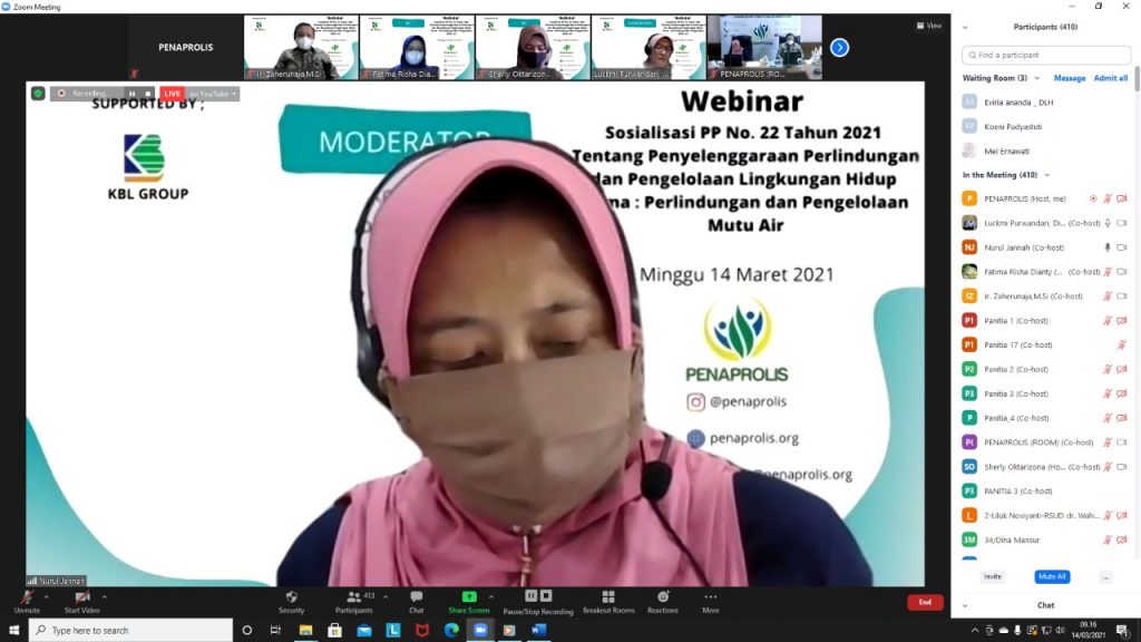 Webinar : Sosialisasi PP 22 Tahun 2021 Tentang Penyelenggaraan Perlindungan dan Pengelolaan LH Tema : Pengendalian Pencemaran Air.
