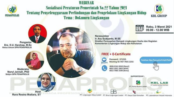 Webinar : Sosialisasi PP 22 Tahun 2021 Tentang Penyelenggaraan Perlindungan dan Pengelolaan Lingkungan Hidup Tema : Dokumen Lingkungan.