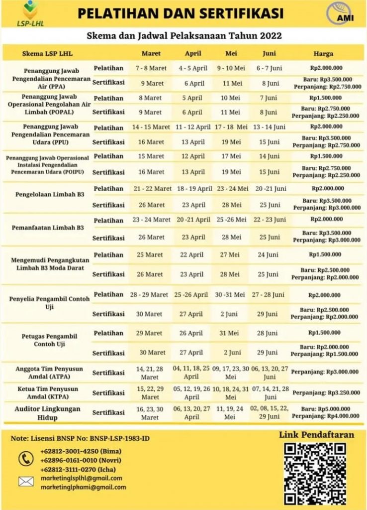 Pelatihan dan Sertifikasi : Jadwal dan Harga Pelatihan dan Sertifikasi LSP Lingkungan Hidup Lestari untuk Bulan Maret hingga Juni 2022