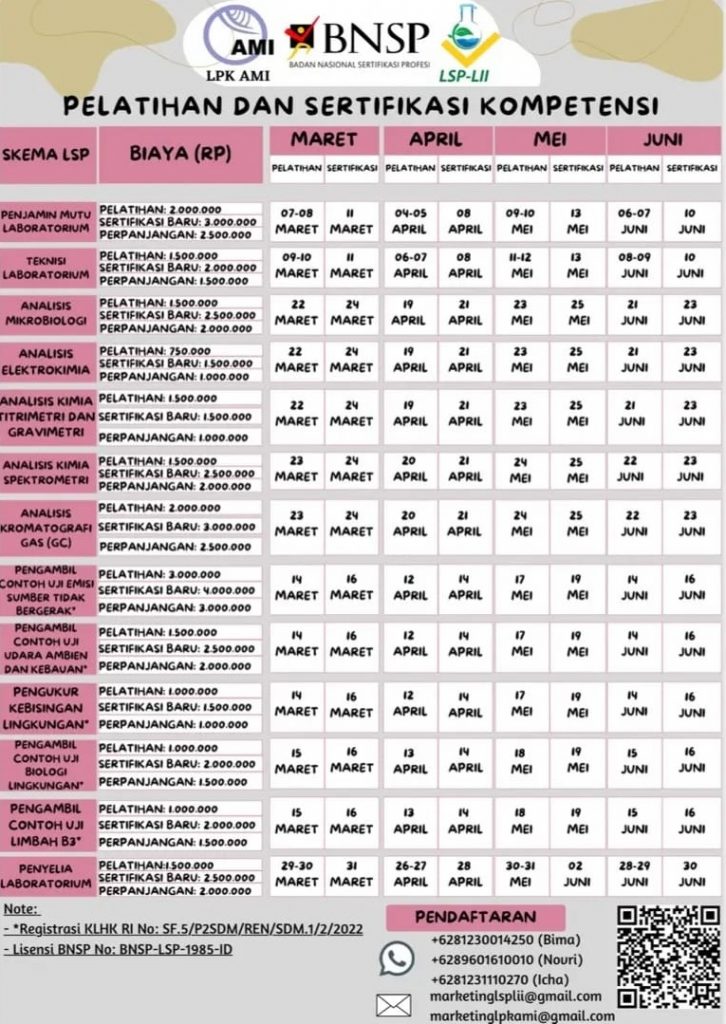 Pelatihan dan Sertifikasi : Jadwal dan Harga Pelatihan dan Sertifikasi LSP Laboratorium Industri Indonesia untuk Bulan Maret hingga Juni 2022